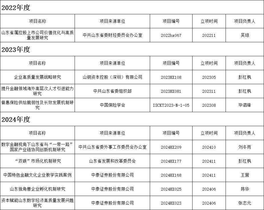2022-2024年度横向科研项目一览表