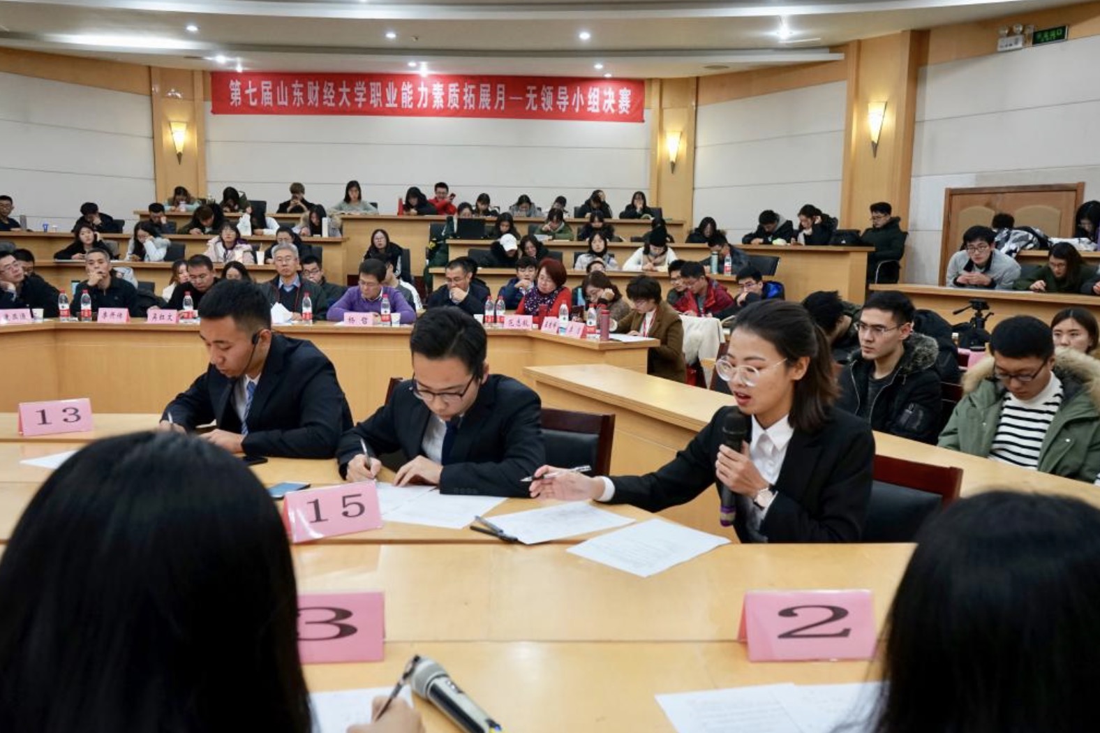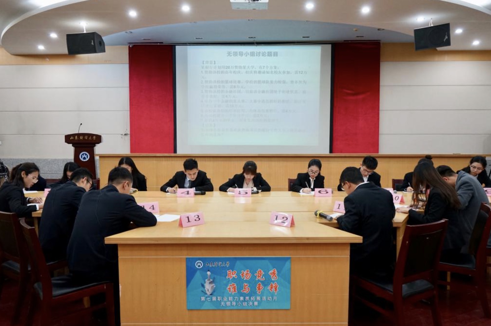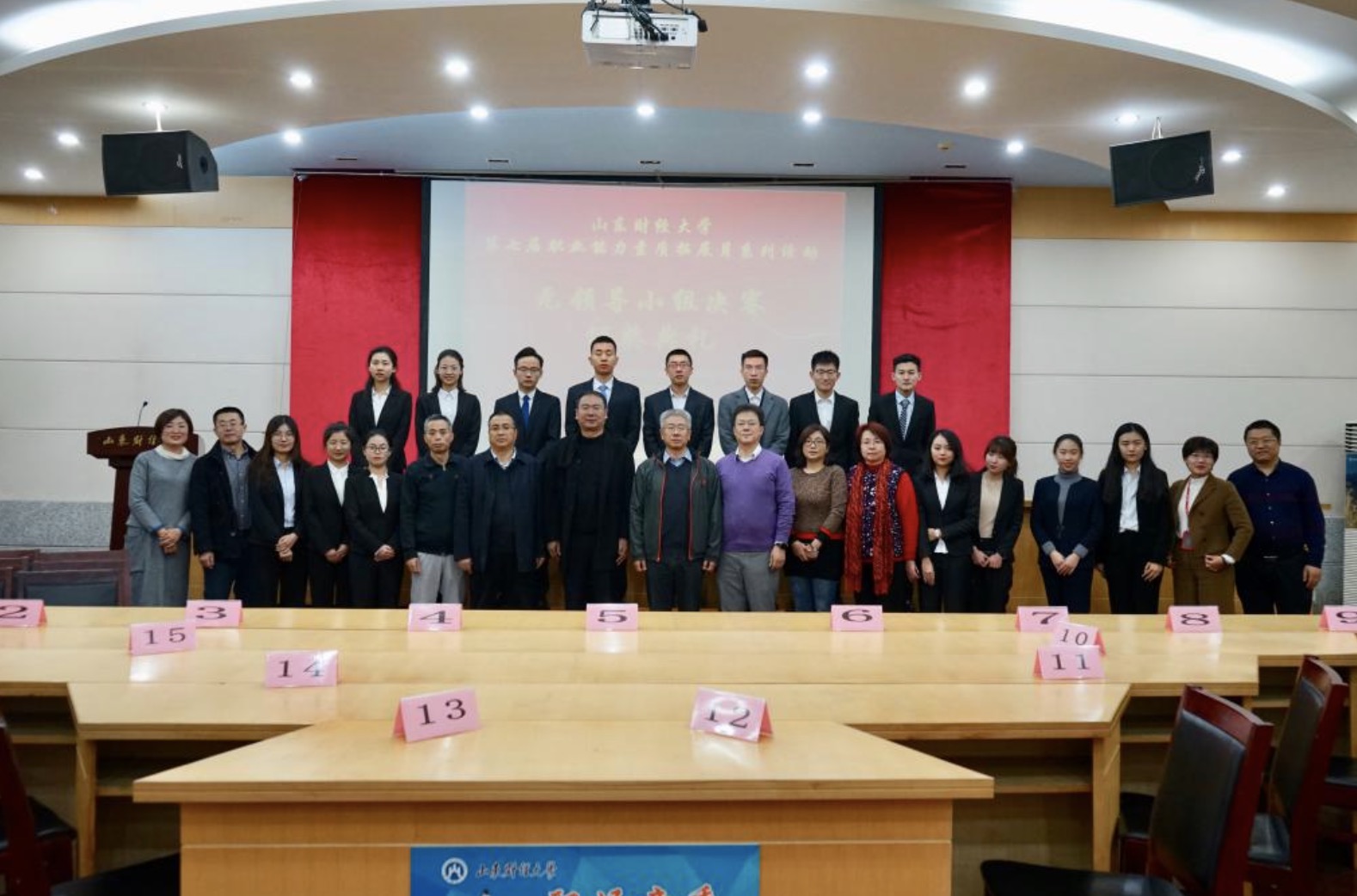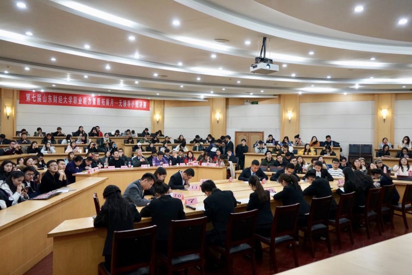 12月9日下午,由山东财经大学就业指导处、黄金娱乐城 主办,黄金娱乐城 就业指导办公室、黄金娱乐城 创新创业中心承办的第七届职业能力素质拓展活动月系列活动之无领导小组决赛在舜耕校区成功举办。副校长张新参加活动并讲话。就业指导处处长杨哲,黄金娱乐城 党委书记吴红文,副书记范志毅、康亚通,财政税务学院党委副书记张代宝,会计学院党委副书记崔东峰,文学与新闻传播学院党委副书记李开传,工商管理学院人力资源管理系教师许庆华,中公教育资深研究与辅导专家李月等亲临现场并担任评委。