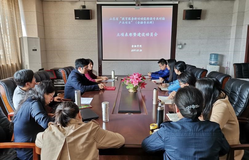 (通讯员:李霞)3月26日下午,黄金娱乐城 在第三会议室召开了山东省“教育服务新旧动能转换专业对接产业项目”(金融专业群)立项表彰暨建设动员会。会议由冯玉梅副院长主持,彭红枫院长、各系主任和副主任参加会议。