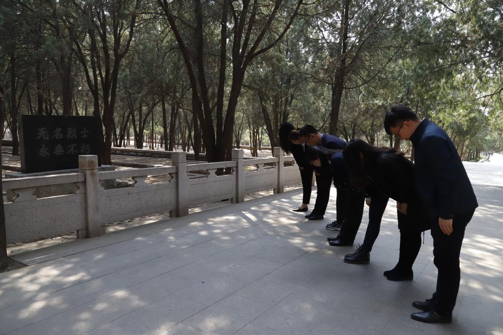 活动中,党员们在烈士纪念碑前、面对党旗郑重重温了入党誓词,一字一句铿锵有力,充分表达出党员们团结一致,恪守党员承诺、彰显争创模范党员的决心。在无名烈士纪念碑前,党员们鞠躬默哀,一块块纪念碑,让党员们重温了党的艰苦奋斗史。祭扫活动不仅缅怀革命先烈们的丰功伟绩,更要弘扬他们的精神,继承他们的革命传统,强化党性意识,时刻以一个共产党员的标准严格要求自己,全心全意为人民服务。