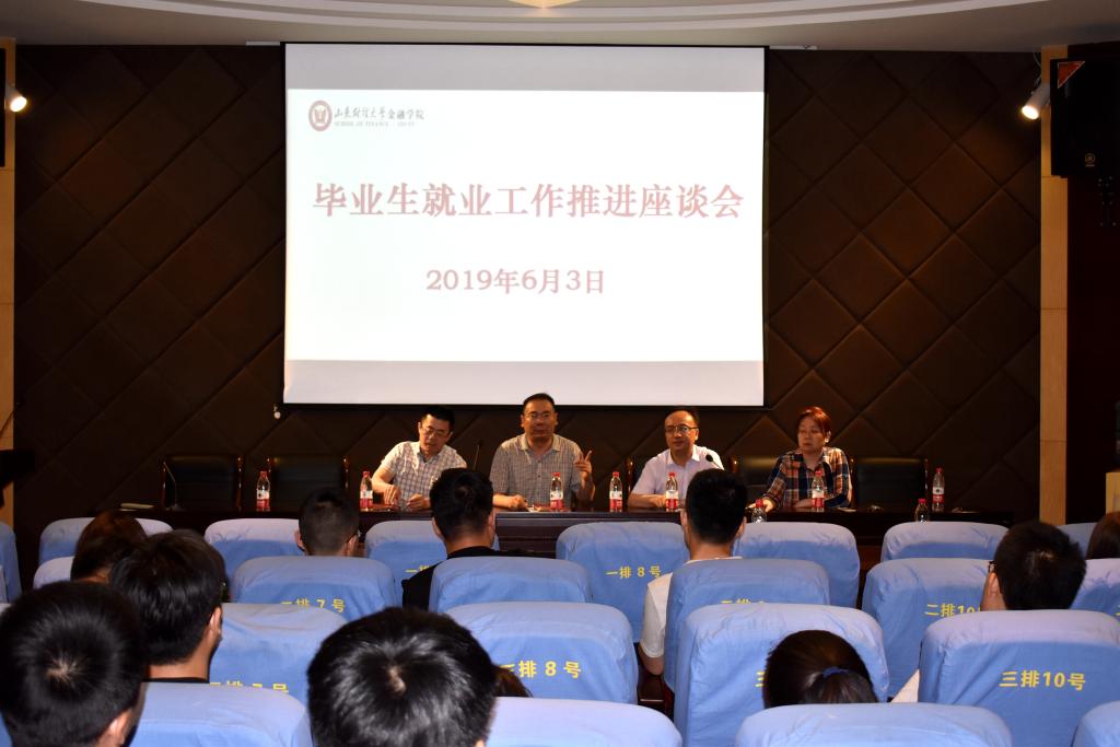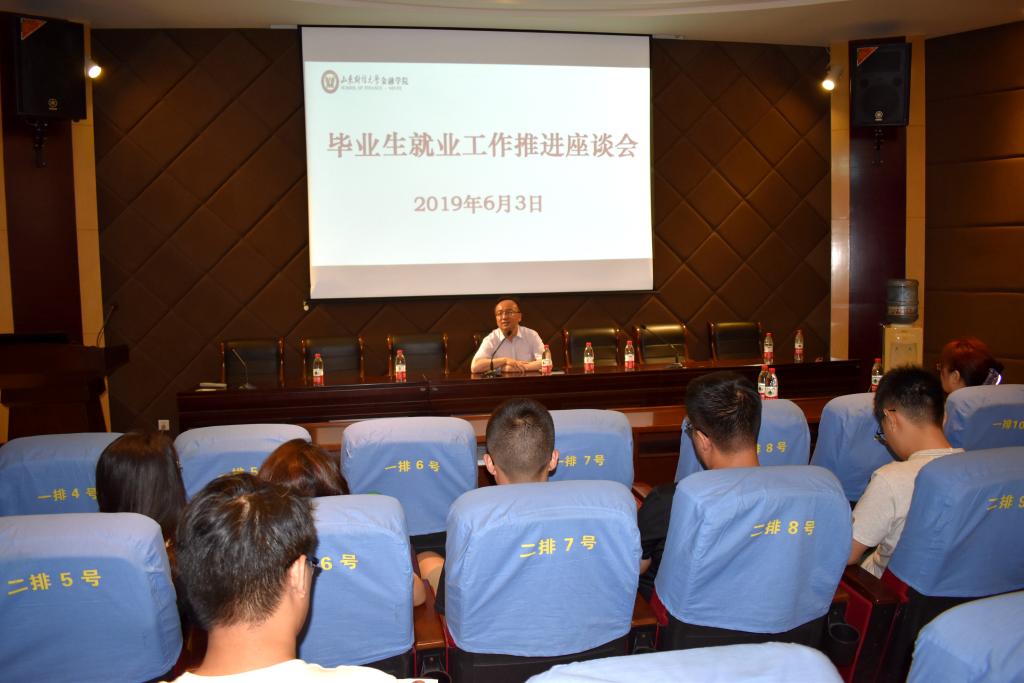 (通讯员:林宁萱)6月3日,金融学院在舜耕校区金融楼学术报告厅举办毕业生就业工作推进座谈会。校就业指导处副处长周广春,黄金娱乐城 党委书记吴红文,学院党委副书记康亚通参加会议,毕业班辅导员及部分毕业生代表参加了座谈会。座谈会由学院党委副书记范志毅主持。