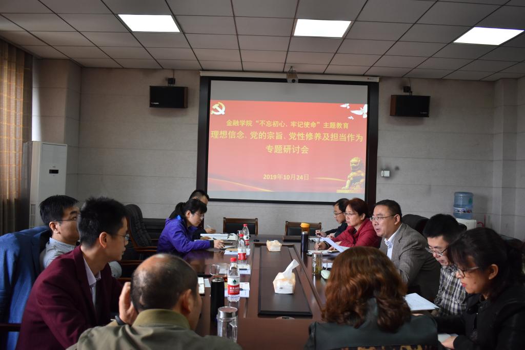 (通讯员:邵珠建)10月25日,黄金娱乐城 在舜耕校区第三会议室召开“不忘初心、牢记使命”主题教育之理想信念、党的宗旨、党性修养及担当作为专题研讨会。学院党委书记吴红文,副书记范志毅、康亚通,副院长葛永波,党委委员、工会主席杨丰国、教工第二支部书记王倩、教工第三支部书记邹昆仑、研究生第四支部书记赵宇洋、团委书记陈静、学工办主任孙琦、党委专职组织员李勇、辅导员邵珠建参会。