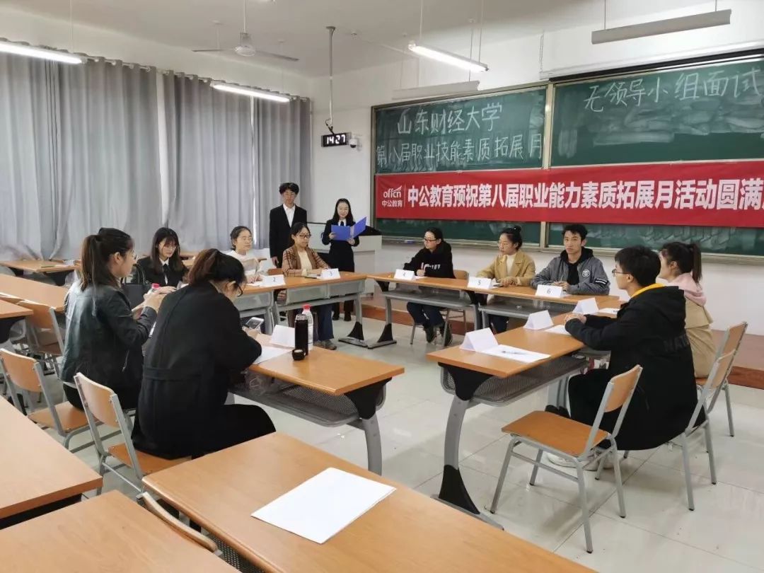 11月7日,由山东财经大学就业指导处主办,黄金娱乐城 承办的第八届职业能力素质拓展活动月系列活动之一的无领导小组面试大赛先后圣井校区、舜耕校区举办。黄金娱乐城 2016级辅导员王亚男,中公教育资深研究与面试辅导专家岳腾飞、王娇、张丽老师出席并担任评委。