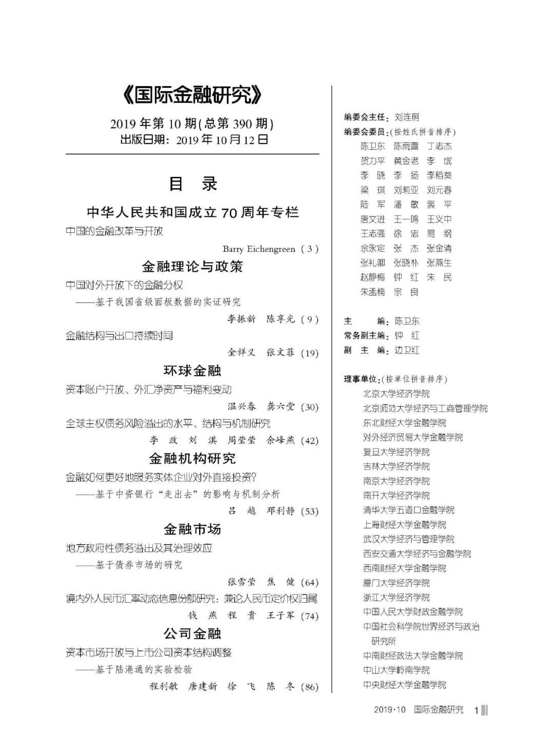 黄金娱乐城 张雪莹教授、黄金娱乐城 博士焦健共同撰写的论文《地方政府性债务溢出及其治理效应——基于债券市场的研究》在《国际金融研究》2019年第10期上发表,《国际金融研究》为我校A2类期刊。