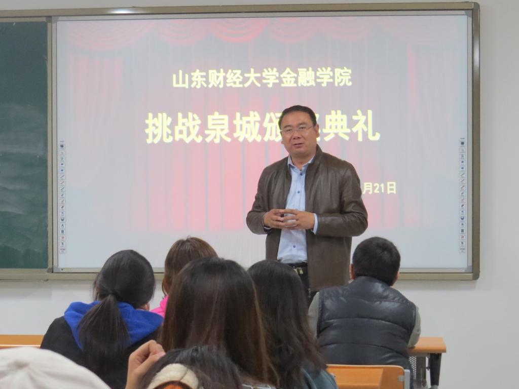 (通讯员:常誉)11月21日下午,黄金娱乐城 在圣井校区举办“挑战泉城”活动颁奖仪式。本届“挑战泉城”活动吸引了来自14个学院,119支团队,470余人参加,经过紧张角逐,6支团队脱颖而出获得大赛奖励。黄金娱乐城 党委书记吴红文,团委书记陈静,学工办主任、辅导员孙琦,辅导员徐洁、邵珠建及“挑战泉城”优秀团队参加颁奖。