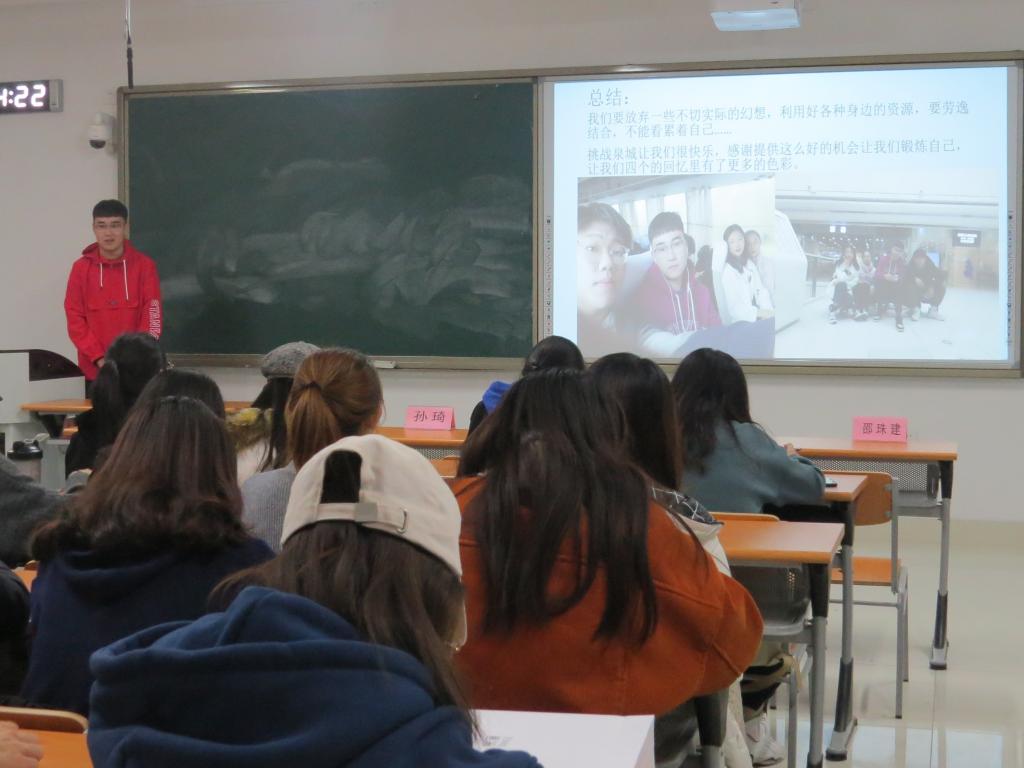 黄金娱乐城 学生代表对“挑战泉城”系列活动进行总结,他主要阐明了实践的重要意义,呼吁大家要按照学院要求积极参加各类实践科创活动,提升学生的实践能力与团队协作沟通能力。随后,“挑战泉城”优秀团队逐一进行了汇报。获奖六支队伍通过播放视频,幻灯片等方式进行了活动成果展示,分享了活动中的趣事及感悟,对团队的表现做出总结。