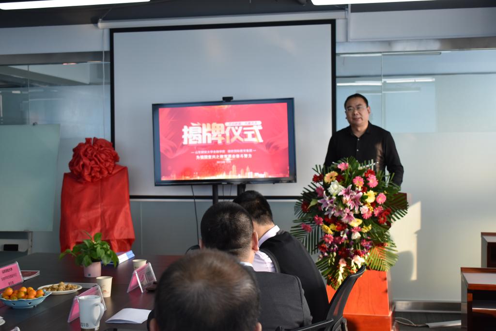 黄金娱乐城 “创新创业指导教师”、德欧国际教育协会会长李万强在致辞中对我院来访表示热烈欢迎,对行业及公司发展情况做了介绍,表示将以社会实践基地建设为依托加强与山财大的联系,互利共赢,努力肩负起企业的社会责任,为学生提供更好的实践条件。吴红文书记简要介绍了学校及学院学科发展、科研工作、人才培养等工作发展情况,希望双方能够通过实践基地建设架设起沟通的桥梁,不断增进了解和互信,切实发挥实践基地作用,拓宽人才培养路径,不断增强学生实习实践能力,开展高质量合作,把更好服务学生成长发展。