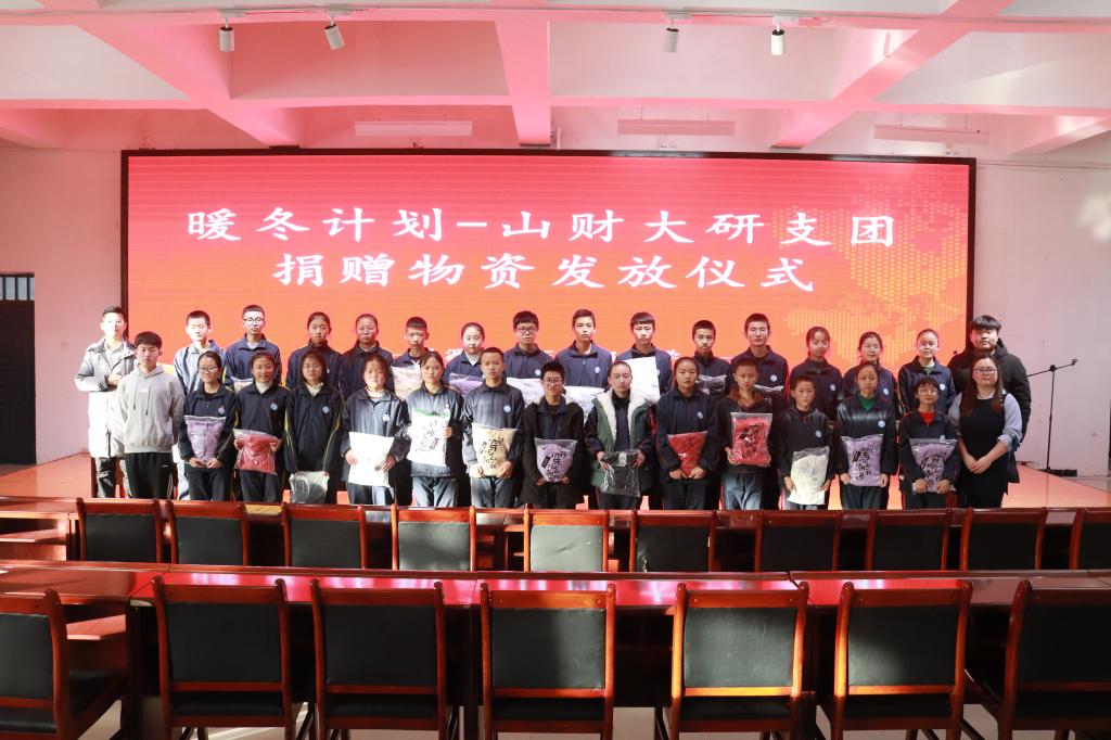 在支教学校和领导老师的交流中,王文浩得知本校虽是县城走读学校,但是仍有一部分学生家庭十分贫困,有的甚至温饱都成问题。王文浩向自己学院领导汇报了支教学校情况,黄金娱乐城 在得知这些情况后,号召师生发起了一场暖冬助学活动。支教学校共收到棉衣23件,笔记本115本,全部分发到了家庭贫困、品学兼优的学生手中,在寒冷的冬天带给他们一丝温暖。