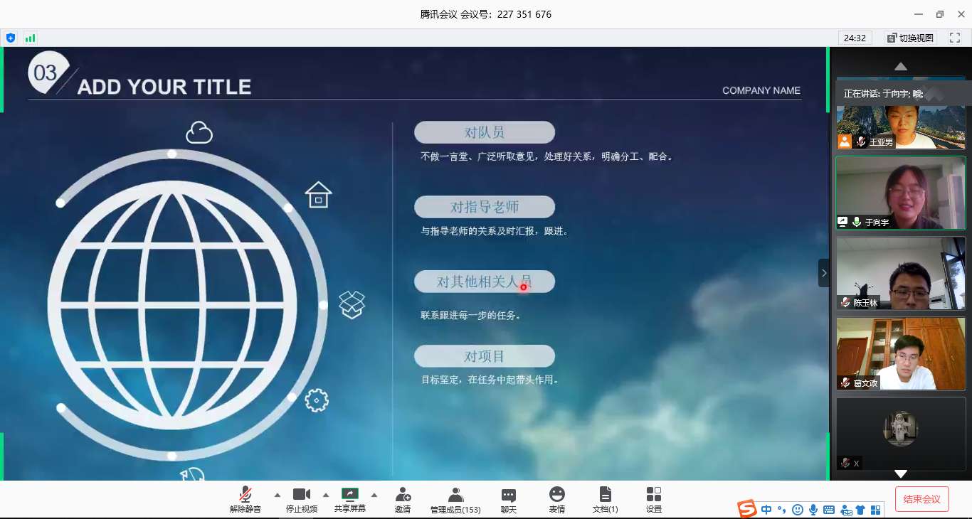 随后,于向宇学姐以PPT形式就如何进行团队组建、如何进行项目的选择、项目队长担负的职责以及如何准备并开展项目进行了详细的介绍。葛文政学长围绕自己的参赛经历,从项目来源、项目分工、比赛流程等方面向同学们分享了自己积累的经验,并且对参加“国创计划”比赛的优势进行分析,鼓励同学们积极参加比赛。紧接着,陈玉林老师着重介绍了创新创业比赛的重要性、学校对此类竞赛的高度重视并以考研为方向展开分析了参加此类竞赛的重要性,并且根据自己经验为同学们提出了宝贵的建议。随后,王亚男老师针对“国创计划”比赛和“互联网+”比赛的背景、项目类型、赛事主题等进行了更加详细的介绍,使同学们对两项比赛有了更深层次的了解。紧接着,王亚男老师列举了往年黄金娱乐城 在两项比赛中所获得的优秀成绩。会议最后,王亚男老师对同学们提出的各种问题进行了详细的解答,直播会圆满落幕。