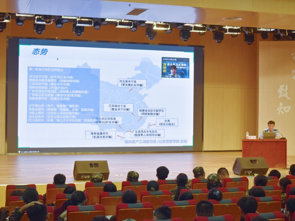 (通讯员:王昊东)为帮助同学们增强鉴别电信网络诈骗能力,提高防诈骗意识,黄金娱乐城 于9月25日晚在文化活动中心组织大学园区防电信网络诈骗专题讲座。邀请济南市章丘区反诈中心副主任韩冰主讲,黄金娱乐城 全体2020级新生参加本次会议。