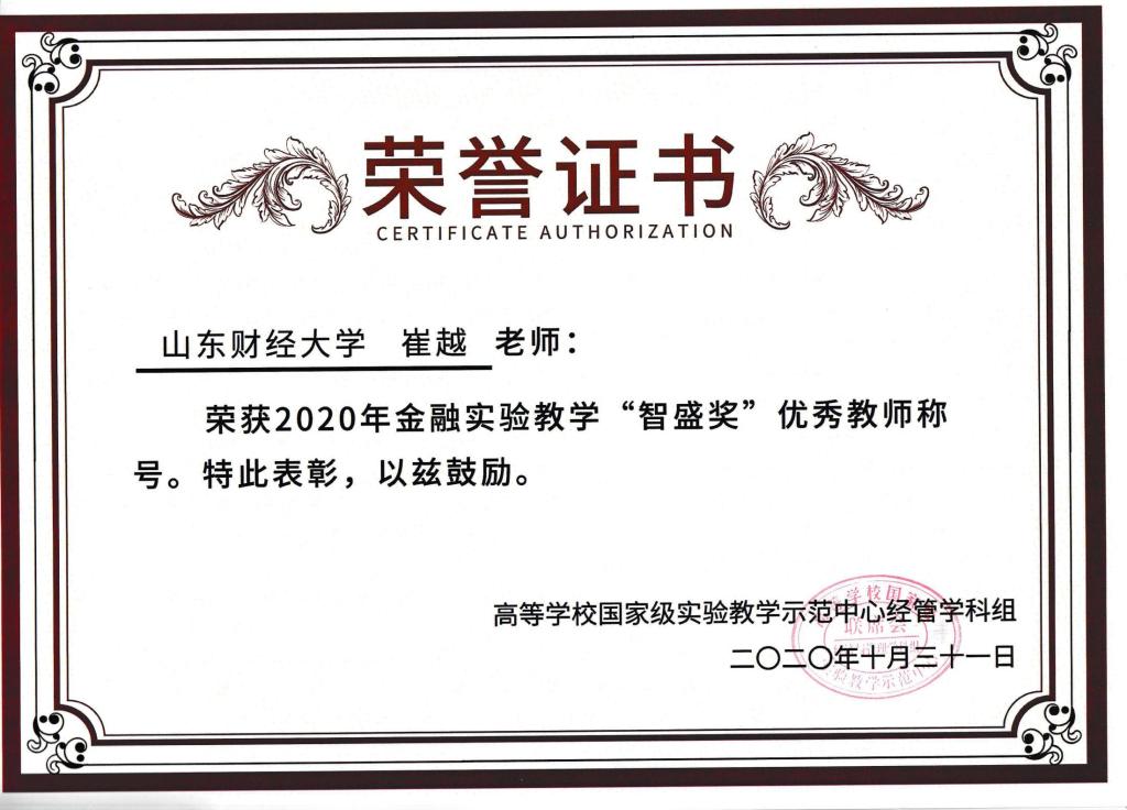 2020年10月31日-11月1日,由教育部高校国家级实验教学示范中心联席会经管学科组主办、浙江嘉兴学院承办的“第二十一届全国高校经管类专业实验室建设暨经济管理实验教学示范中心建设研讨会”在嘉兴举行。经学校推荐,学科组专家评选,黄金娱乐城 崔越副教授荣获“智盛奖”优秀实验教师称号。
