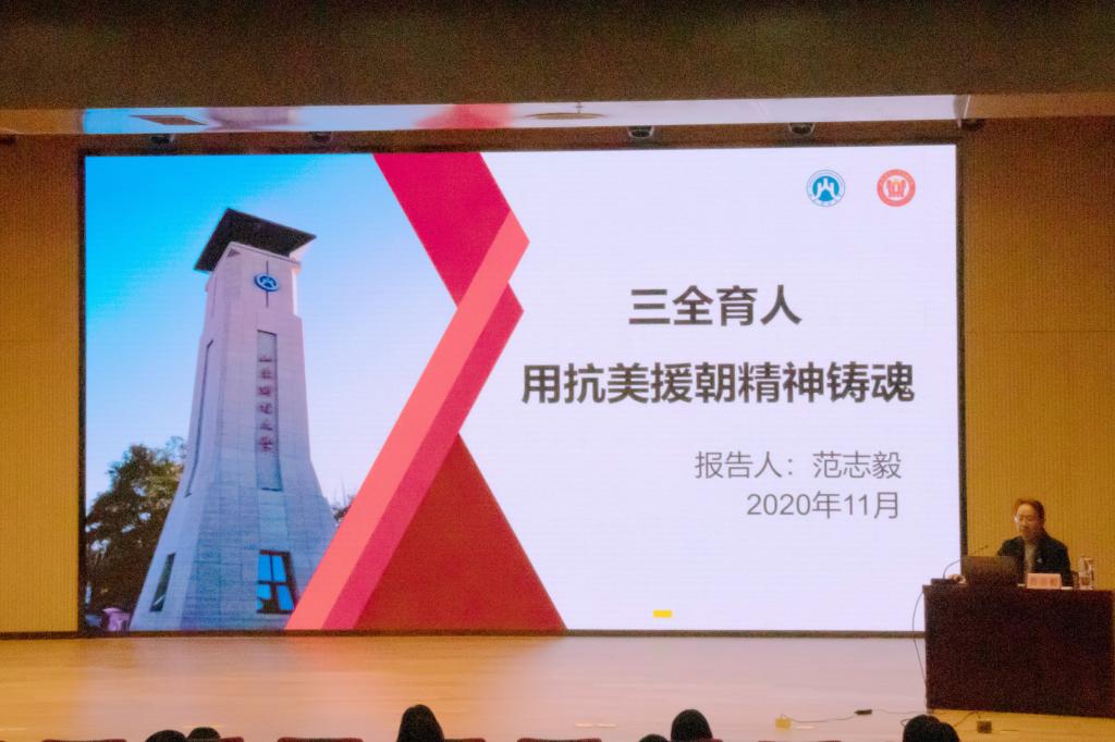 (通讯员:夏驰骜 李烁涵)为深入贯彻落实习近平总书记在纪念中国人民志愿军抗美援朝出国作战七十周年大会讲话精神,用抗美援朝精神铸魂,11月12日下午,由学生处主办,黄金娱乐城 承办的第273期“成长·成才”大讲堂在圣井校区文化活动中心多功能报告厅开讲,邀请黄金娱乐城 党委副书记范志毅做了题为“三全育人,用抗美援朝精神铸魂”的主题讲座,学校部分学生参加了此次讲座。讲座由黄金娱乐城 学工办主任孙琦主持。