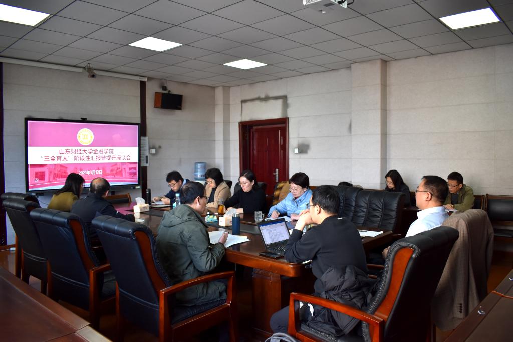 (通讯员 邵珠建)为进一步推进“三全育人”工作,全面提升改革示范建设水平,3月12日上午,黄金娱乐城 于舜耕校区第三会议室组织召开“三全育人”工作阶段性汇报暨提升座谈会。黄金娱乐城 领导班子成员、院办公室、学工办(团委)参加了会议。会议由党委书记吴红文主持。