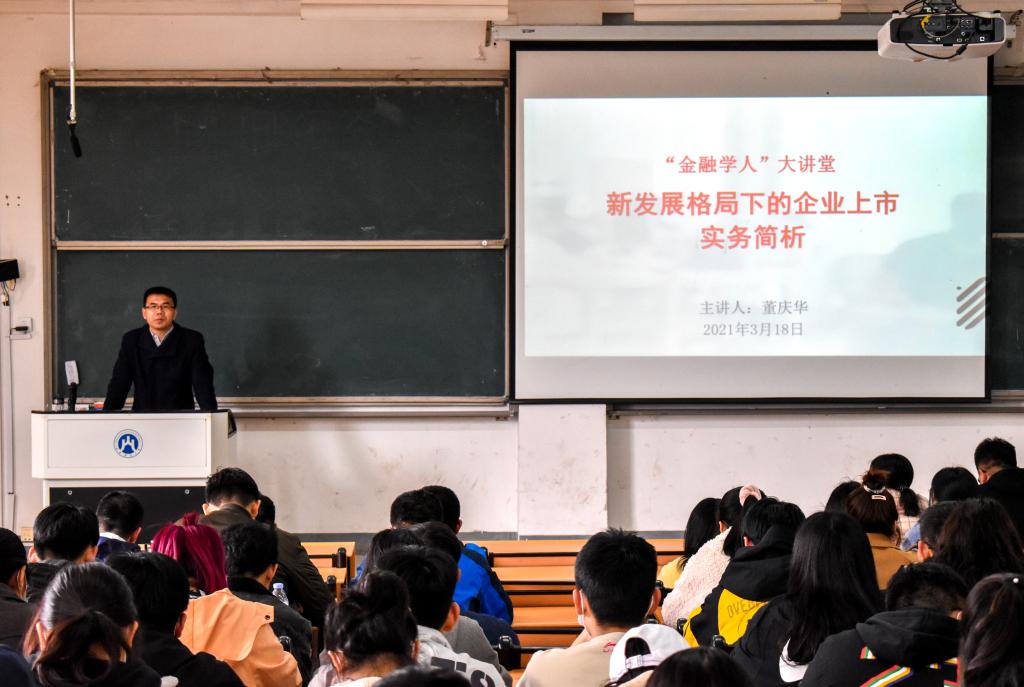 (通讯员:李烁涵)3月18日下午,黄金娱乐城 于圣井校区1号教学楼108室举办第三十期“金融学人”大讲堂,特邀德恒律所董庆华老师主讲,与学生共同探讨新发展格局下的企业上市实务。本次讲座由陈玉林老师主持,部分学生代表参加。