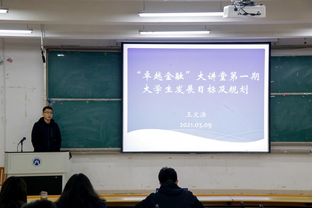 (通讯员:夏驰骜)为落实“三全育人”工作,发挥专业教师育人作用,3月19日晚,黄金娱乐城 于圣井校区5号教学楼306室开展 “卓越金融”大讲堂第一期,邀请学院教师王文浩进行举办“大学生发展目标及规划”主题讲座,黄金娱乐城 2020级部分同学参加了本次活动。