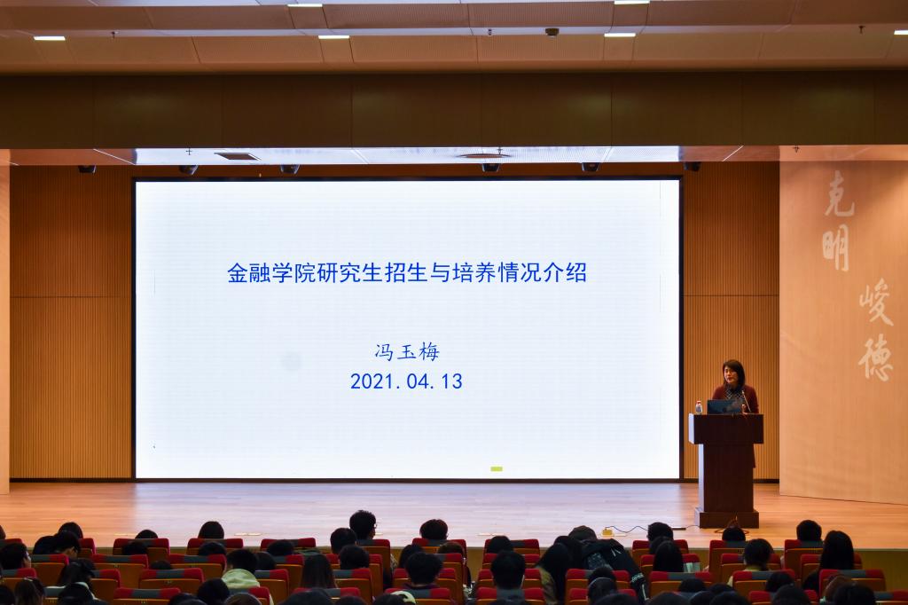 讲座伊始,冯玉梅老师就2021年度研究生招生工作进行了解读说明,并做出系统性的总结,使同学们对当下研究生招生的大背景、大环境有了更深刻的认识。她向同学们分析了我校金融学硕和专硕的报考情况,全面介绍了近年来我院硕士、博士研究生的培养情况,对学院的未来发展和专业前景做出基本判断。讲座最后,她针对近年来不断发展变化的考研形势及同学们普遍关心的研招笔试、面试准备、调剂等各类问题进行了讲解和答疑。同学们积极响应,现场气氛活跃,纷纷表示受益匪浅。