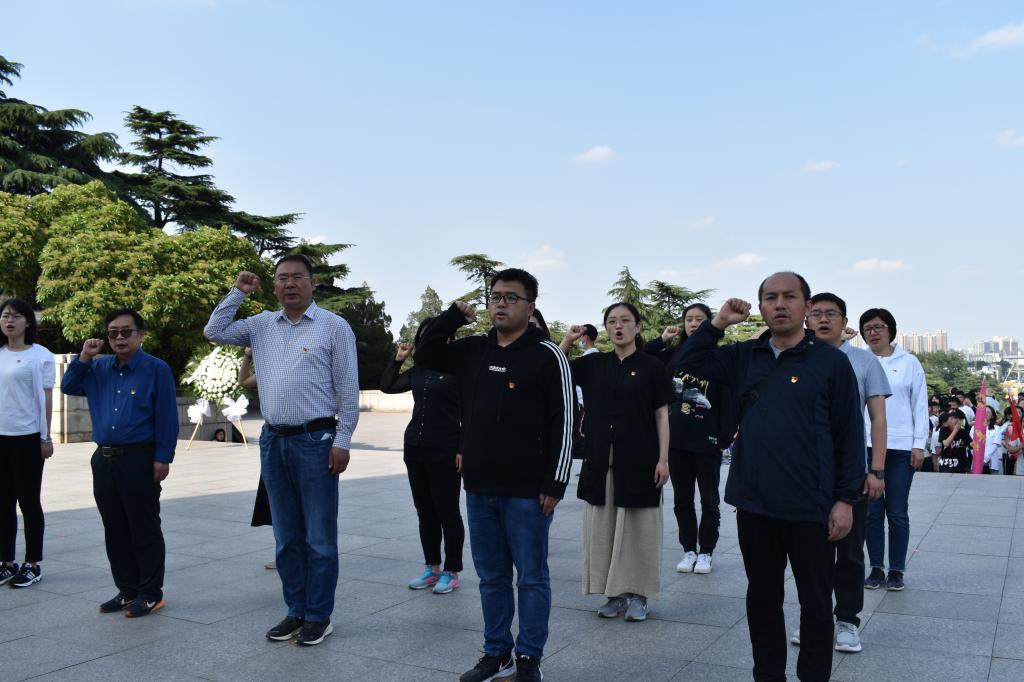 烈士忠魂昭昭,白云轻抚悠悠。初夏的徐州市淮海战役烈士纪念塔园林万木葱茏、庄严肃穆。为缅怀革命先烈,表达崇敬之情,我院师生党员拾阶来到淮海战役纪念塔前,缓步绕塔一周,深情瞻仰纪念塔及三万多名烈士名录。在四块无字碑前,全体党员思绪万千,深切缅怀无名烈士的牺牲奉献。站在纪念塔前,全体党员三鞠躬表达敬意。学院学生第三党支部书记郭夕熙带领全体党员面对鲜红的党旗,举起右拳,庄严地重温入党誓词。“我志愿加入中国共产党……”,字字千钧,句句铿锵,萦绕在纪念塔周围。大家参观了淮海战役纪念馆,一件件实物、一张张图片、一个个场景,让大家对淮海战役历史有了更深入的了解,深刻感受到了共产党领导下的革命军人一不怕苦、二不怕死的大无畏革命精神,感受你中有我、我中有你的军民鱼水情。随后,大家还参观学习了淮海战役碾庄圩战斗纪念馆。