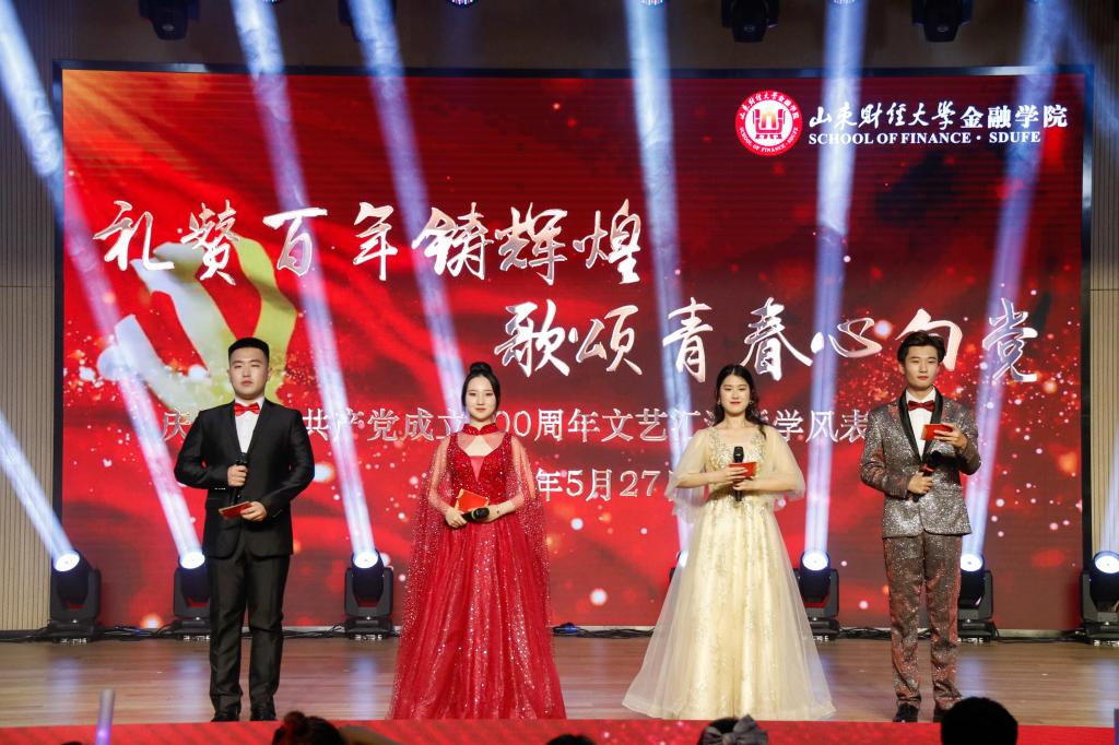 (通讯员:夏驰骜)一路风霜初心不变,百载砥砺换了人间。为传承红色基因,弘扬爱党爱国情怀,表彰优秀的金融学子,5月27日晚,黄金娱乐城 于圣井校区文化活动中心举办“礼赞百年铸辉煌,歌颂青春心向党”庆祝中国共产党成立100周年文艺汇演暨学风表彰大会,山东财经大学党委宣传部副部长张艳霞、党委学生工作部副部长孙丽华、就业指导处副处长杜丽娜、黄金娱乐城 党委书记吴红文、院长彭红枫、党委副书记范志毅、工会主席杨丰国及学院全体辅导员、各兄弟学院师生代表近500人参加本次活动。