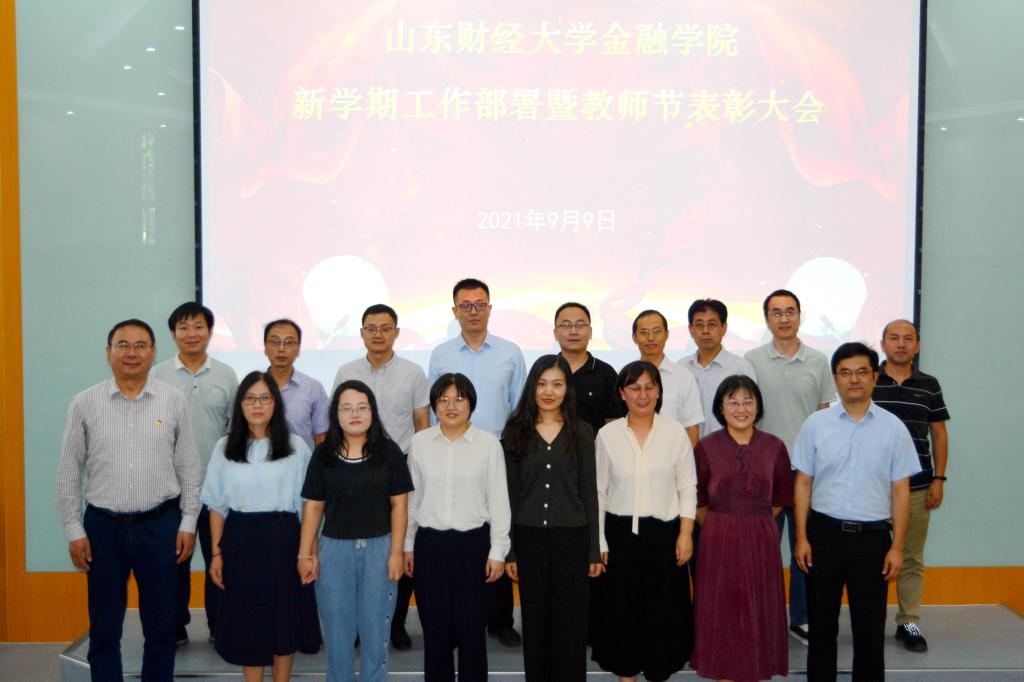 会议首先隆重为新入职的四位教师举行了入职仪式,学院领导为他们颁发了院徽和工作间钥匙,四位教师做了自我介绍并表示尽快融入学院大家庭,期望在未来的工作中做出卓越成绩。其次召开了教师节表彰大会,对在过去的一年中各领域工作做出突出贡献的教职工和集体进行表彰:刘新学、侯成晓、陈静、宋晓蕾获得优秀共产党员荣誉;教工第四党支部获得优秀党支部荣誉;李勇获得优秀辅导员荣誉;张晶、李梦被评为优秀女教工;陈彬彬获教学贡献院长奖;梁巧慧、李明明、刘立安获得优秀教学奖;学院办公室和国际金融系被评为年度团队贡献院长奖;刘海明、石晓、肖祖沔、张雪莹、陈彬彬获得科研贡献院长奖;张雪莹老师获得优秀研究生指导老师奖;李霞获得优秀服务奖。多年来,学院通过建立健全荣誉体系制度,每年表彰一批先进个人和集体,激励学院广大教职工在本职岗位上爱岗敬业,争创佳绩,发挥了积极的正面引导作用。