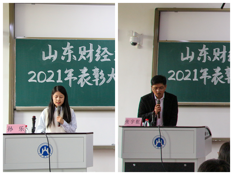 王亚男代表学院宣读了黄金娱乐城 在各项科创大赛中的获奖名单,与会领导老师为优秀团队代表进行了颁奖。随后,2018级学生代表、推免生孙乐结合自己的创赛经历为大家提供了三点实用性建议。一是为自己创造一个持续提升的环境,培养具象化的沟通表达能力;二是选择一支优秀队伍,找准自身定位;三是专注项目本身,调整状态,认真工作。她希望同学们能够积极参加比赛,但行好路,莫问前程,在竞赛中锻炼自己提升能力。2019级学生代表张宇航在发言中表示,科创比赛创造的佳绩离不开学院的支持、老师的指导和团队同学的努力。他结合自身工作和参赛经历表示每一次的项目完善都极大地提升自身综合能力。他也希望同学们能够提升科创意识,抓住机会,突破自我,为黄金娱乐城 赢得荣誉。