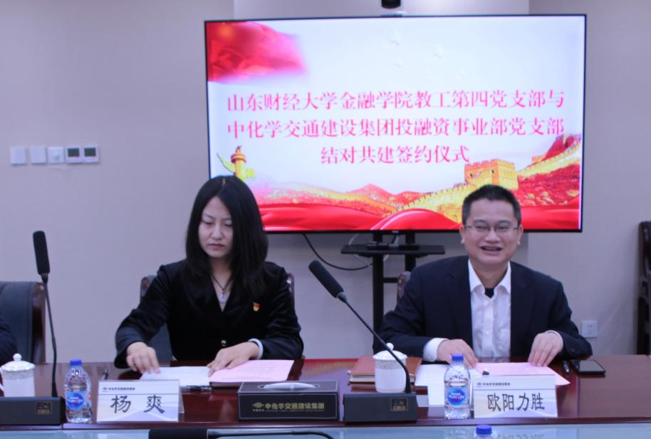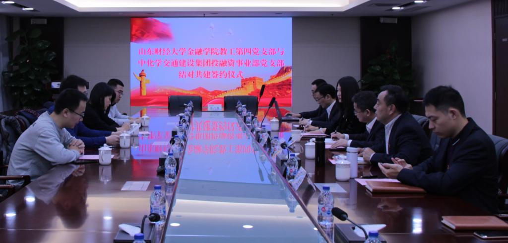 11月26日,黄金娱乐城 教工第四党支部与中化学交通集团有限公司投融资事业部党支部在中化学交通集团有限公司举行党支部共建签约座谈会。黄金娱乐城 副院长冯玉梅、中化学交通建设集团投融资事业部党支部书记欧阳力胜、教工第四党支部书记陈彬彬和部分党员代表,和全体党员参加座谈会。