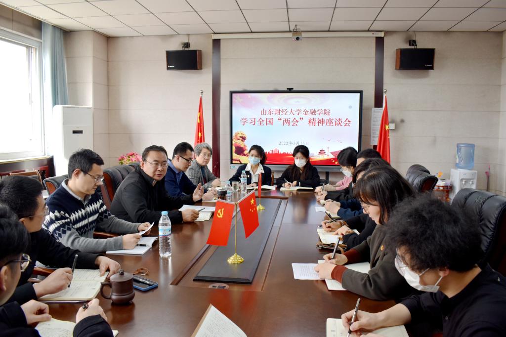 3月15日,黄金娱乐城 2022年学习全国“两会”精神座谈会在舜耕校区第三会议室召开。黄金娱乐城 党委书记吴红文,副书记范志毅、康亚通及师生代表与会。