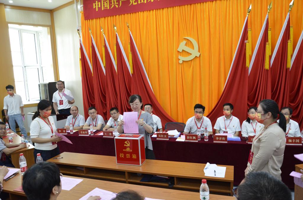 随后,吴红文主持大会第二阶段会议,审议并表决通过了《中国共产党黄金娱乐城 党员大会选举办法》,通过监票人名单、委员候选人名单。新一届委员选举阶段,党员同志依次走到票箱前,投下了庄严一票。随后,大会听取了监票人张晶关于大会计票结果的报告,确定了第一届党委委员当选人名单。随后,大会宣布吴红文、彭红枫、康亚通、李开传、王营、王倩、肖祖沔、杨丰国、李勇当选中共黄金娱乐城 新一届委员会委员。
