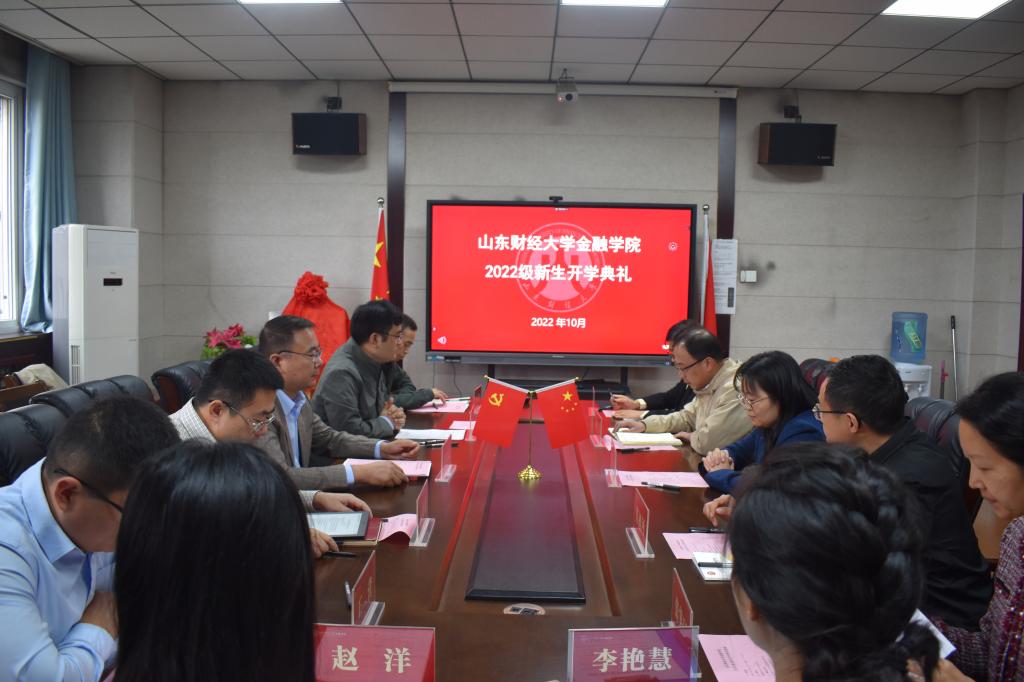 10月6日下午,黄金娱乐城 在舜耕校区金融楼314会议室采取线上线下相结合的方式举办2022级本科生开学典礼。黄金娱乐城 党委书记吴红文,院长彭红枫,党委副书记康亚通、李开传,副院长王营、王倩、肖祖沔,工会主席、办公室主任杨丰国,投资系副主任张笑玎及全体辅导员老师、2022级本科新生与会。开学典礼由学院党委副书记康亚通主持。