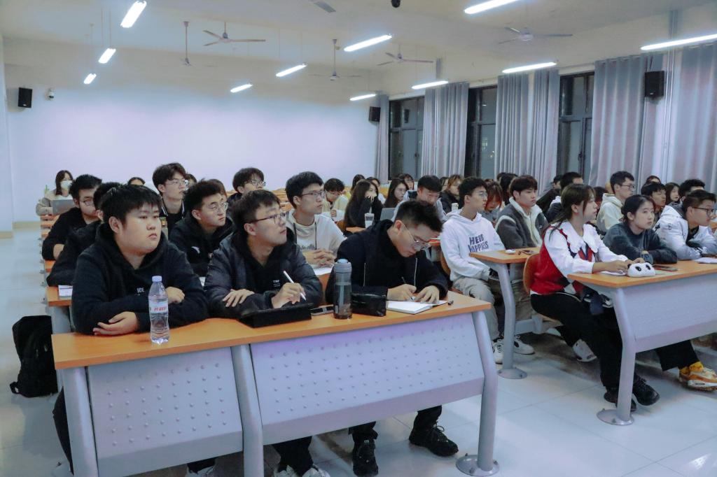 (通讯员:符曦元)11月17日晚,为深入学习贯彻党的二十大精神,黄金娱乐城 党委书记吴红文在圣井校区为所联系班级开展题为“听党话 跟党走 走大道”的主题宣讲。2022级金融学1班全体同学参加宣讲会。