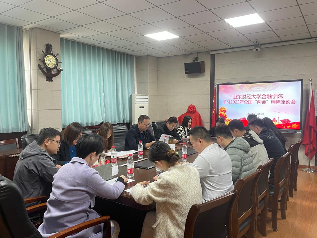 为深入学习贯彻党的二十大精神,第一时间传达学习全国“两会”精神,3月15日,黄金娱乐城 召开学习2023全国“两会”精神座谈会。黄金娱乐城 党委书记吴红文,党委副书记康亚通,金融科技系杜娟博士,团委书记郭夕熙,研究生辅导员许静,党委组织员邵珠建,本科新生辅导员王蕴玮及部分学生代表参加会议。座谈会由党委副书记康亚通主持。