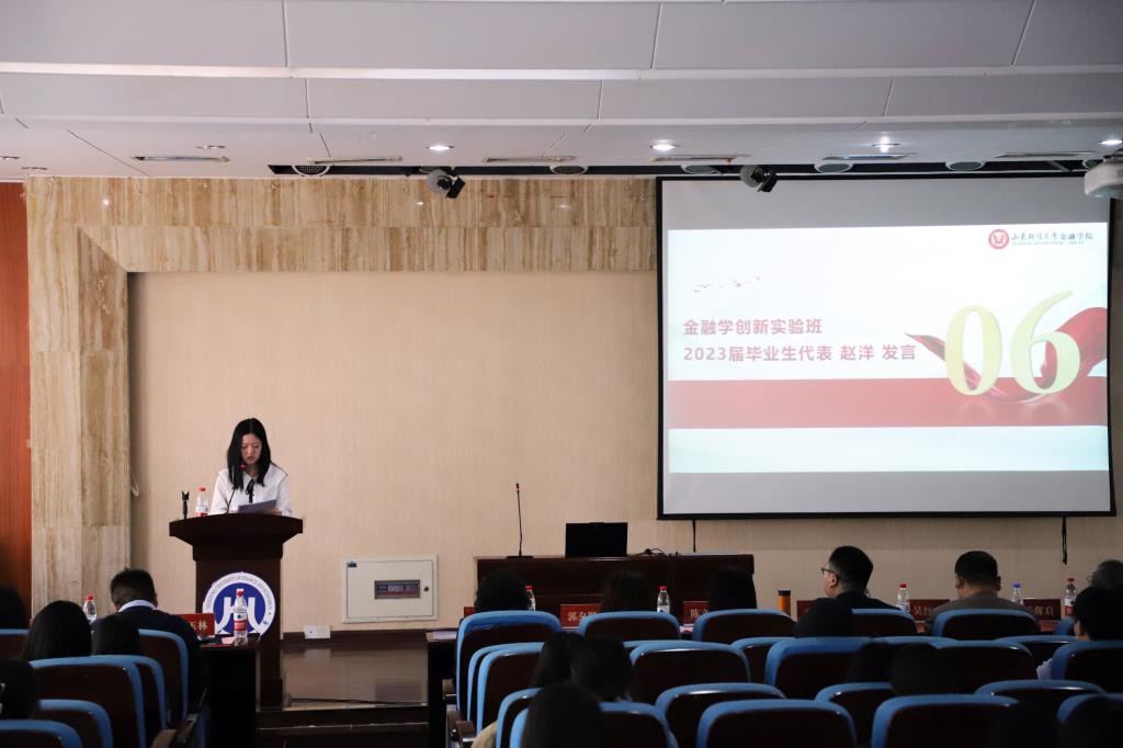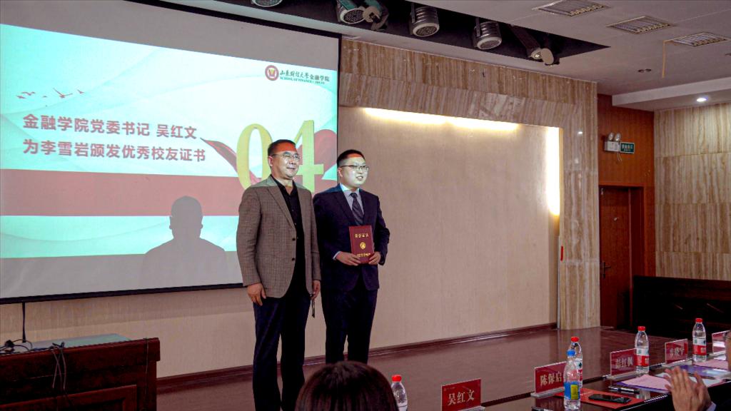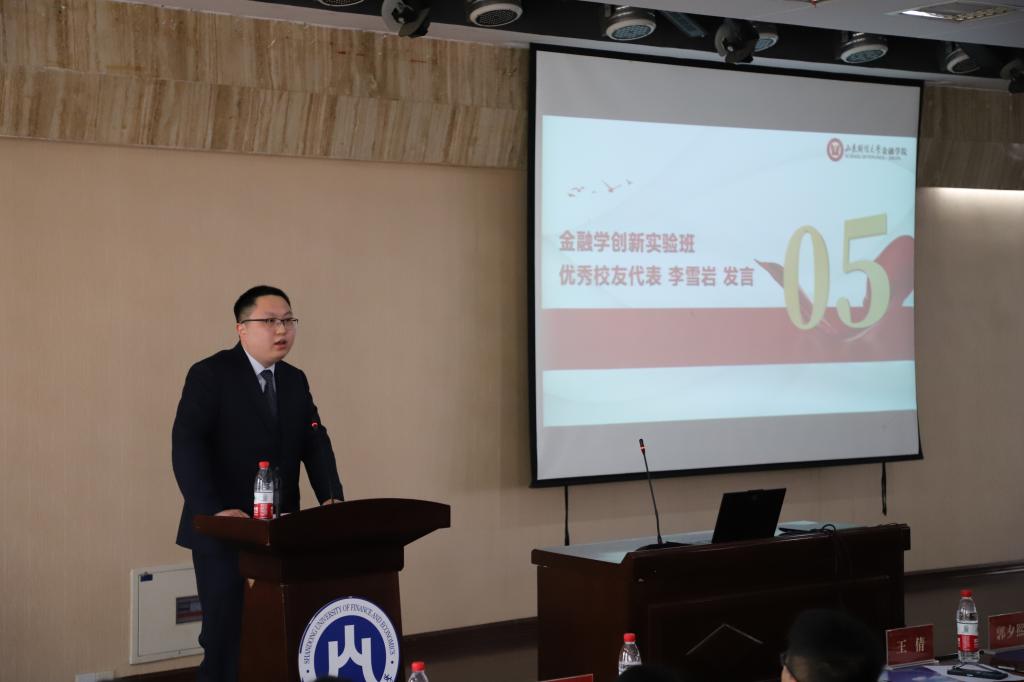 金融学创新实验班优秀校友代表李雪岩发言。他首先感谢母校和学院为金融学子搭建了金融学创新实验班的优良学习平台。随后结合自己的学习、工作经历鼓励在校学生珍惜机会和时光,在金融学创新实验班良好的环境中努力钻研、奋发向上。随后,吴红文为李雪岩颁发优秀校友证书。金融学创新实验班2023届毕业生代表赵洋和2022级金融学创新实验班新生代表徐艺欣分别进行了发言,她们分享了自己在金融学创新班实验班学习的收获与感悟,表达了志存高远、脚踏实地,努力成长为优秀金融人才,为国家建设和社会发展做出更大贡献的雄心壮志。