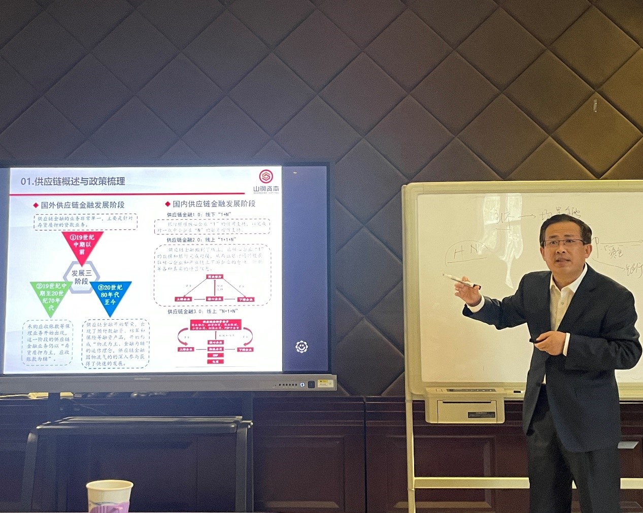 王老师首先基于理论与实践两种视角深入阐释了供应链金融的逻辑内涵,强调为解决信息不对称引致的信用风险,在由传统基于不同主体的借贷活动向公开透明的场景金融转变过程中以5G、物联网、区块链等技术为载体的供应链系统的极端重要性,其次,进一步梳理了供应链金融政策的发展沿革,探讨了供应链金融模式的国内现状,指出供应链金融在全面深化改革过程中为解决中小企业融资难问题所发挥的重要作用,最后,详细介绍了供应链系统搭建的基本思路与现实路径,强调供应链金融在防范系统性风险方面的重大意义。