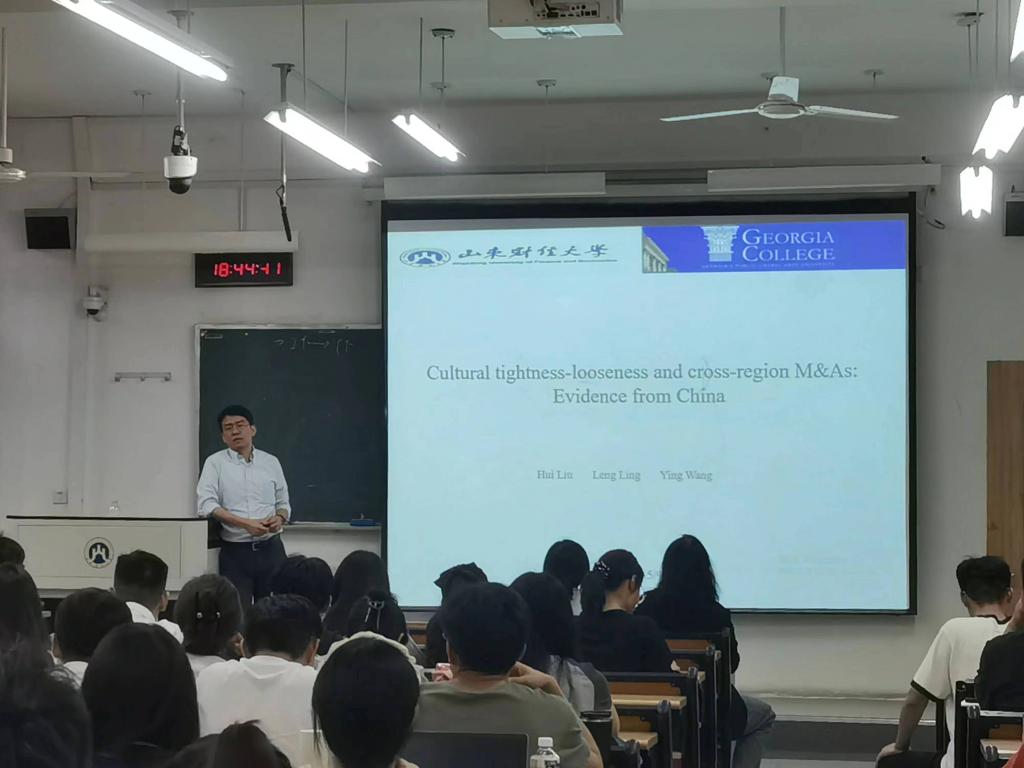 (通讯:曲诞雪)2023年5月10日晚上,由黄金娱乐城 、山东财经大学金融国际研究中心和山东省金融产业优化与区域管理协同创新中心共同主办的第24期“泰山学术训练营”在舜耕校区3号教学楼309教室举行。美国Georgia College & State University金融学终身教授、山东财经大学特聘教授凌崚老师应邀做客训练营并分享其近期研究成果。本次讲座题目为“Cultural tightness-looseness and inter-regional M&As: Evidence from China”,由黄金娱乐城 副院长王营教授主持。黄金娱乐城 副院长王倩副教授、部分教师和研究生参加了此次讲座。