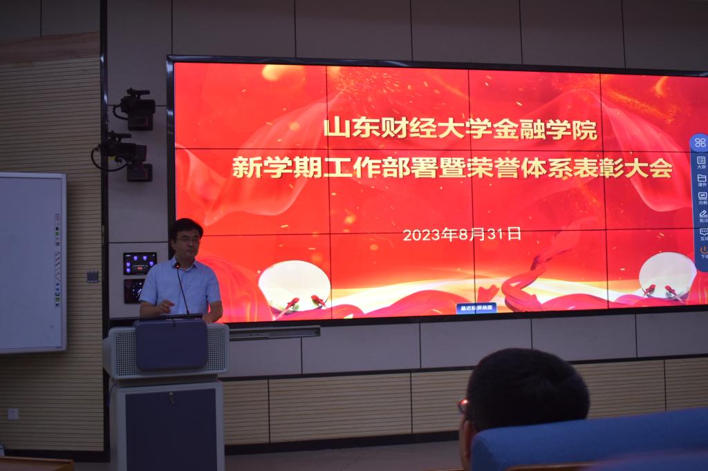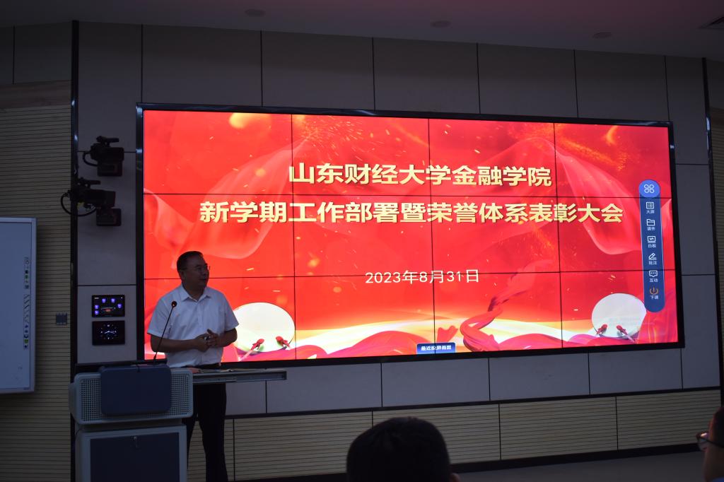院长彭红枫针对过去一年学我院在各项工作中取得的成绩作了报告。他指出,在全院师生共同努力下,学院教育教学和科研均取得了骄人成绩,一是教育教学再创突破。学院金融学教师团队入选第三批“全国高校黄大年式教师团队”,我院《金融学》(线下)课程被教育部认定为第二批国家级一流本科课程,截至目前我院国家级课程已达4门;1位教师获得山东省第十届高校青年教师教学比赛优秀奖;2个案例入选全国金融教指委2023年度优秀案例库,1个项目获批教育部供需对接就业育人项目,1支队伍获第十三届“挑战杯”中国大学生创业计划竞赛全国决赛全国铜奖,1支队伍获得第五届“郑商所杯”全国大学生金融模拟大赛全国总决赛三等奖。二是科学研究全面开花。学院顺利完成山东省一流学科建设“811”项目申报工作;学院共发表学术论文143篇,其中在A1级以上期刊发表学术论文7篇;1人获国家自然科学基金青年项目资助,刘海明团队入选首批山东省哲学社会科学青年人才团队。三是学术交流搭台唱戏。过去的一年,学院共组织全国性学术会议2次,相继有东北财经大学黄金娱乐城 、首都经贸大学黄金娱乐城 、江西财经大学黄金娱乐城 、山东理工大学经济学院等单位来我院访问交流,同时,我院还成为首批全国高校红色金融育人联盟会员单位。