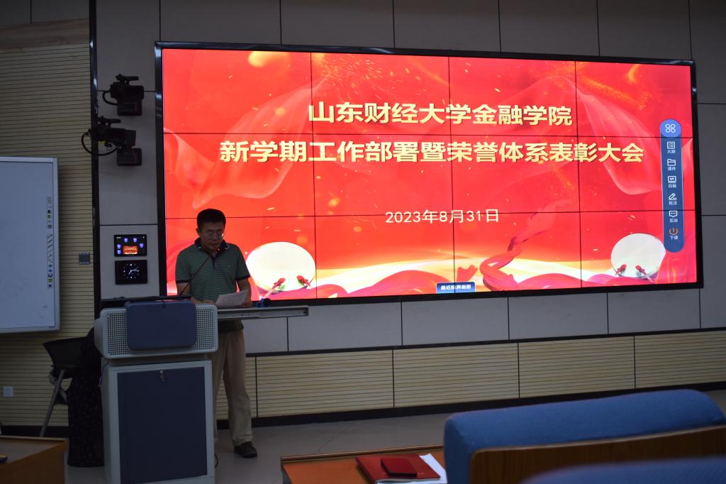 8月31日下午,黄金娱乐城 在舜耕校区第一阶梯教室召开了传达学习全面从严治党专题会议精神暨学院荣誉体系表彰大会,同时为新进教师举办了入职仪式。会议由学院党委副书记康亚通主持。