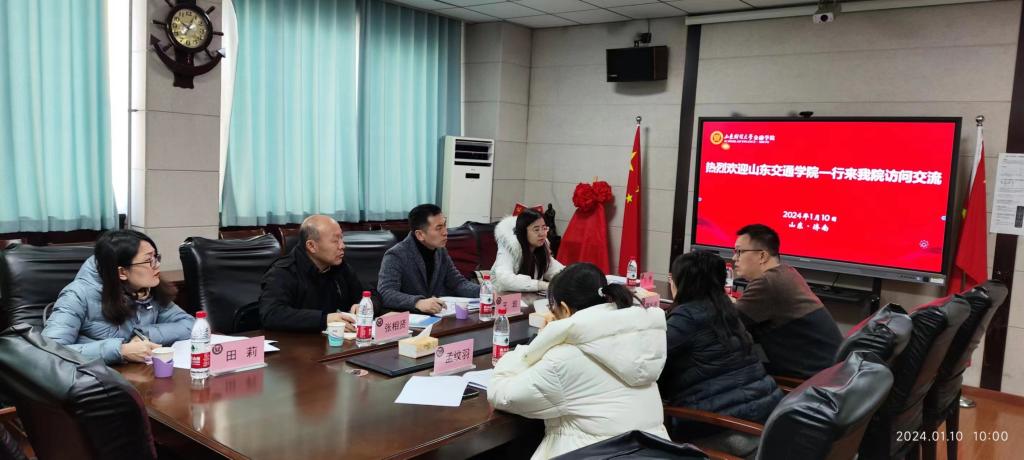 1月10日上午,山东交通学院国际商学院金融系系主任王岩老师一行四人来我院访问交流。我院副院长王倩、金融科技系系主任孟纹羽、副主任陈彬彬和部分金融科技系教师参加了座谈交流。