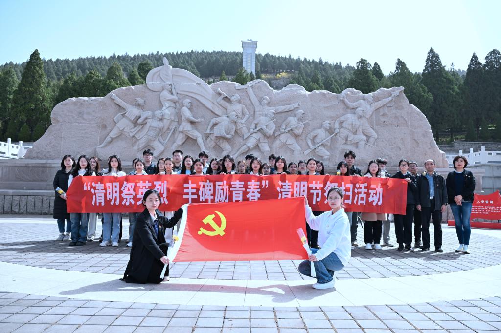 为深入学习贯彻习近平新时代中国特色社会主义思想,加强爱国主义教育,3月29日上午,黄金娱乐城 组织预备党员、青马工程学员等40余人在学工办主任李勇,团委书记郭夕熙,党委专职组织员邵珠建,辅导员王丽、王蕴玮老师的带领下前往章丘烈士陵园开展清明祭扫活动。