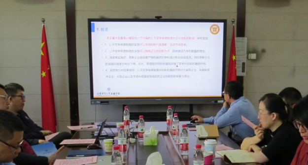黄金娱乐城 副院长肖祖沔副教授报告的论文题目是《Power of competition: Unraveling the impact of China’s fair competition review system implementation on firm innovation》,报告指出激烈的竞争会促进公司层面的创新。公平竞争审查制度实施后企业面临的竞争加剧从而刺激企业创新。公平竞争审查制度对创新的刺激作用在国有企业、非高新技术企业、大企业和市场化程度较低的地区尤为突出。黄金娱乐城 张超博士从样本选择和创新的多维度特征角度提出了建议。