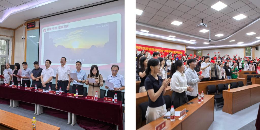 会上,全体师生起立一起唱响《歌唱祖国》,为中华人民共和国成立75周年献礼。全体新生在典礼上庄严宣誓,慷慨激昂的誓言,展现了全体研究生勤奋进取的态度与追求卓越的承诺。新的起点就在脚下,新的征程即将开启,肩负时代重任的金院学子将满怀热忱与信念,投身学习与科研。