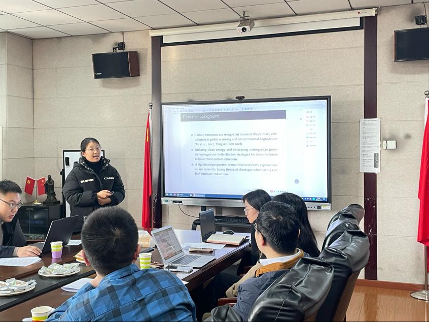 会议第三阶段由学院副院长王倩主持。宋寒凝老师作了题为《贸易冲击下的中国区域不平等》的报告。点评专家从控制变量选择、文献梳理的逻辑、理论支持和被解释变量的测算等角度对文章提出了问题和建议。张艳老师作了题为《Financial and Operational Strategies in a Low-carbon Supply Chain with carbon-dependent Loan Rate》。点评专家围绕模型的设计、变量的选择、情景模拟和研究意义等方面提出了具有针对性的问题和意见。