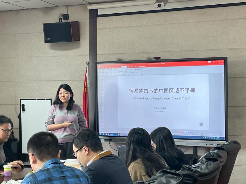 本次workshop共有9名教师汇报了近期研究成果,主题包括政府引导基金与企业数字化转型、中国股票市场国际化中的风险传染、贸易冲击与区域不平等、银行策略与碳排放、文明城市创建与资本跨区域流动等。报告人从观点提出、方案设计、研究结果和结论等方面对研究成果进行了展示,点评人从多个方面对论文进行了详细的点评并展开自由讨论,为汇报者明确研究定位、完善研究成果提供了宝贵意见。