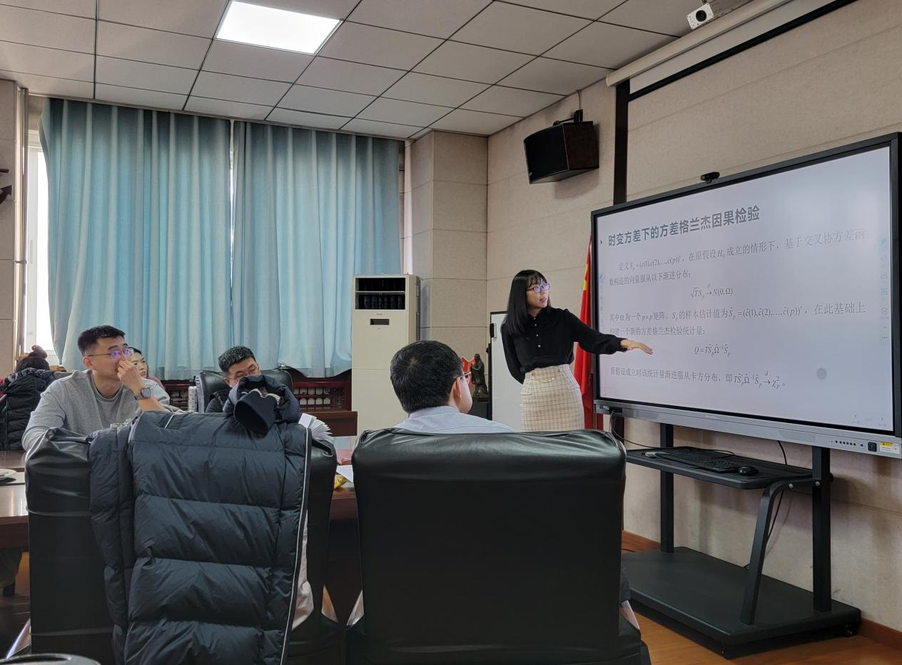 会议第二阶段由学院副院长肖祖沔主持。王兆刚老师作了题为《基于遗传算法的文本特征选择研究》的报告。点评专家围绕引言与选题背景的结构分布、参考文献选取、内容丰富性方面提出针对性意见。刘彦臻老师作了题为《中国股票市场国际化进程中的风险传染》的报告,点评专家围绕实证结果、写作规范等方面提出意见,提出可以考虑某突发事件或政策的影响与中外溢出的效果。