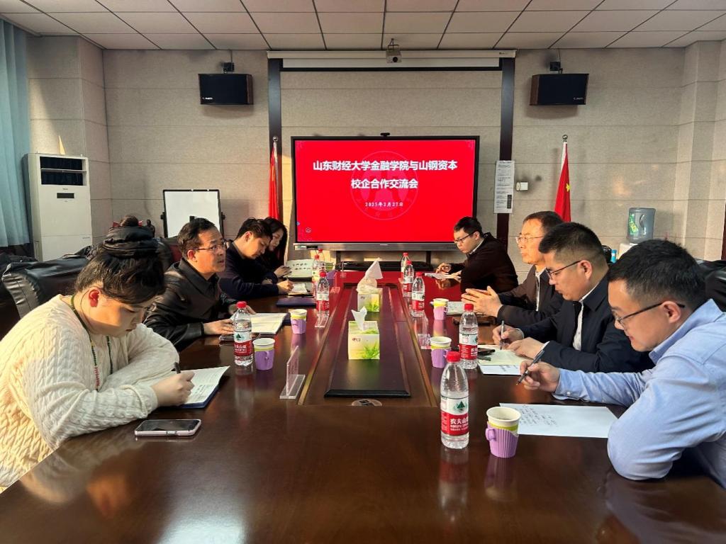 2 月 27 日下午,山钢资本首席经济学家王来星一行到黄金娱乐城 访问交流。黄金娱乐城 党委书记吴红文主持会议,学院执行院长王营、党委副书记李开传、副院长肖祖沔、国际金融系主任尹智超参加会议。