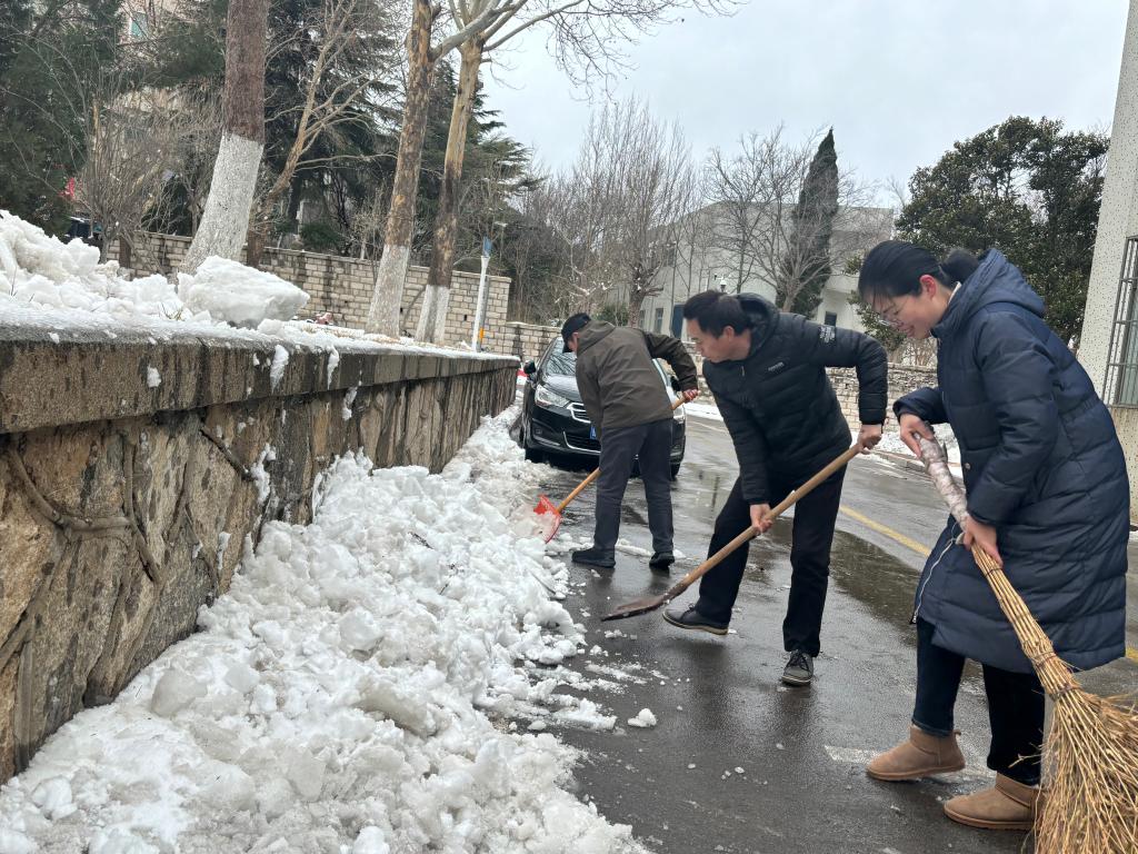 在舜耕校区,黄金娱乐城 党委副书记李开传带领辅导员和部分研究生学生党员干部一起扫雪除冰,以实际行动践行志愿服务精神,展现了学院的团结与担当。黄金娱乐城 学生党员、干部冲锋在前,主动担当、践行使命,以“亮身份、作表率”的行动诠释先锋模范作用;青年志愿者迎寒而上,用热情融化冰雪,成为最温暖的“志愿红”。