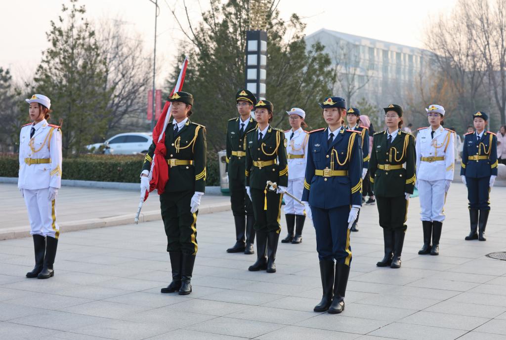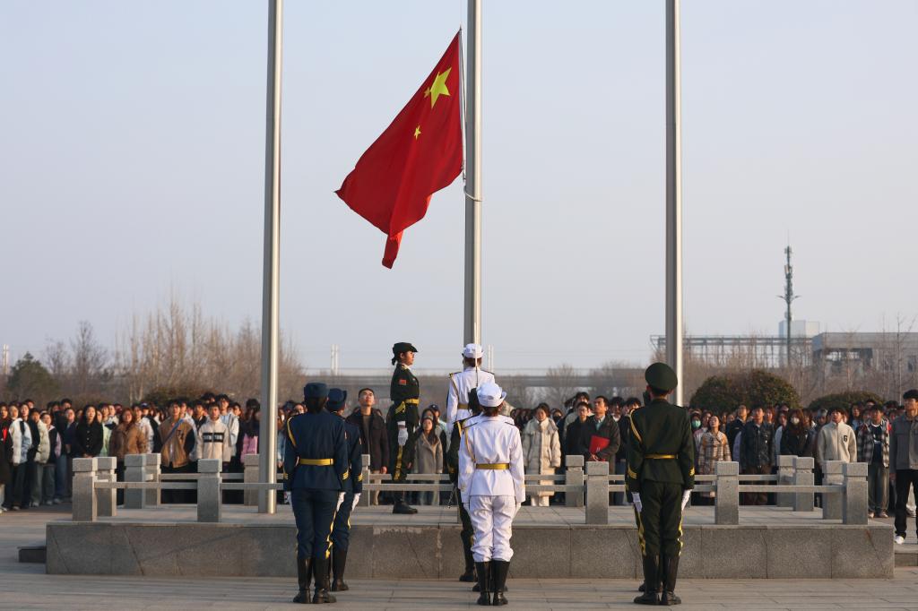 当激昂雄壮的国歌声在校园响起,庄严肃穆的升旗仪式正式开始。山东财经大学国旗护卫队队员迈着刚健整齐的步伐,护卫着国旗向升旗台稳步前行。晨光熹微,金色的光辉映照在徐徐上升的五星红旗上,全体师生肃立,目光炯炯,心中饱含着对国旗的深深敬意与炽热的爱国之情。