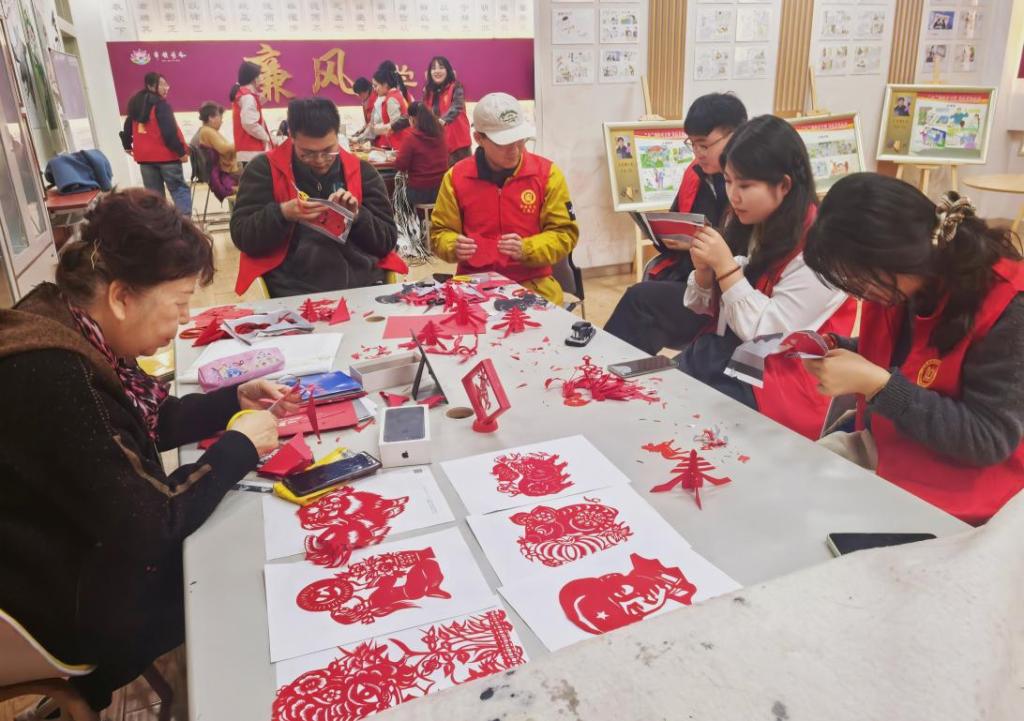 为了激发同学们学习雷锋志愿服务精神的热情以及对中国传统非遗文化的关注,3月14日,黄金娱乐城 组织12名研究生志愿者前往舜园社区党群服务中心开展传承非遗文化志愿服务活动,进行柳编与剪纸艺术的实践体验活动。