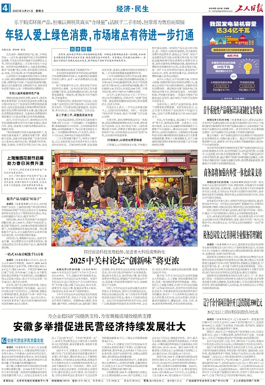 王营建议,应在制度体系方面,尽快建立和完善全国统一的绿色产品认证与标识体系,进一步强化与国际标准接轨,并完善绿色消费市场监管体系,提高企业“洗绿”、绿色产品造假的处罚力度;在政策支持方面,加大财政金融等政策对绿色消费的全周期支持力度,加快完善绿色消费基础设施,提高绿色消费服务的便捷性和可达性;在观念贯宣方面,进一步扩大生态环保知识宣传,普及绿色产品的认识、选择、使用和处置方法,将绿色消费理念融入各类社会规范。
