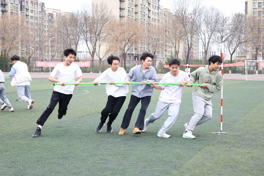 团体项目更加考验团队协作能力。在接力赛中,每一棒的交接都承载着队友们的信任与期望,选手们紧密配合,为了班级的荣誉奋力奔跑。在拔河比赛现场,同学们齐心协力,口号声震耳欲聋,展现出团结一心的强大力量。各个班级的同学们在团体项目中团结一致、默契无间,充分发挥集体的智慧和力量,真正诠释了团队精神的内涵。