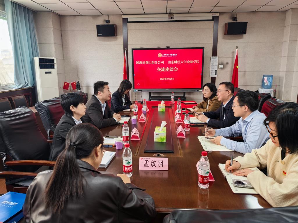 为进一步加强校企合作,探索人才培养新模式,3月26日,黄金娱乐城 与国海证券山东分公司在舜耕校区开展座谈交流。国海证券山东分公司总经理马庆,学院党委书记吴红文,副院长王倩、肖祖沔等人参加座谈。