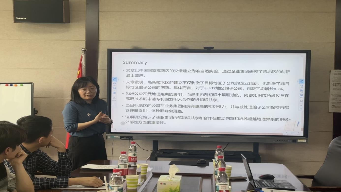 香港理工大学曾诚副教授报告的题目是《Knowledge Without Borders:Cross-region Innovation Spillover within Business Groups》。文章发现,高新技术区的设立不仅能够激发目标地区子公司的创新活力,对非目标地区子公司的创新发展同样具有显著的促进作用。同时,文章还强调了集团内部知识共享与协作在推动创新进程、形成跨地域正向外部性方面的关键意义。山东财经大学王倩副教授从尝试分析创新溢出的动态过程、先后顺序,以及子公司对母公司、母公司对子公司的双向溢出效应等方面提出建议。